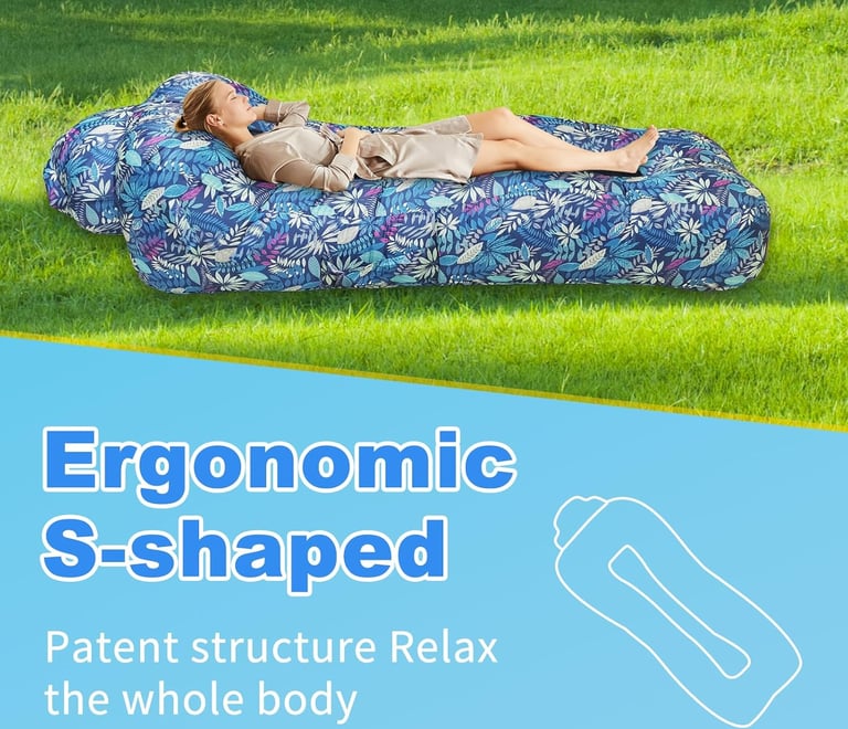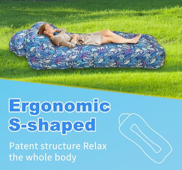 Relax anywhere with this inflatable air sofa. No pump needed — just scoop air and lounge! Perfect for camping, beach trips, or parks with ergonomic comfort and style.