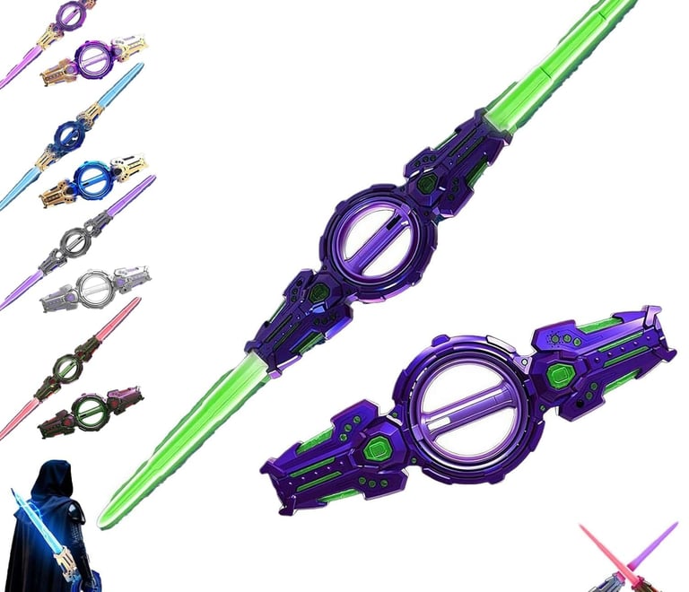 Unleash epic battles with this LED fire spin sword featuring rotating double edges, FX sound effects, and seven glowing colors. Perfect for cosplay, parties, gifts, and immersive warrior play.