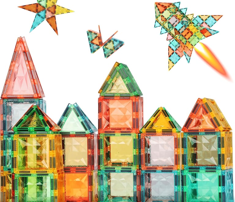 Encourage creativity with magnetic tiles building set for kids. Strong magnets, bright colors, and endless shapes help develop STEM skills, imagination, and hands-on fun without screens.