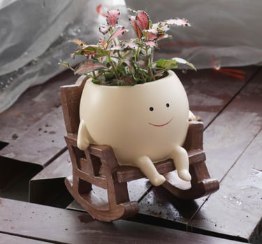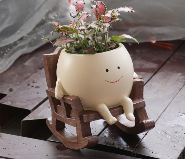 Add joy to your space with this smiling face rocking chair planter. Made from durable resin with drainage hole, perfect for succulents and indoor or outdoor décor.