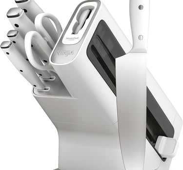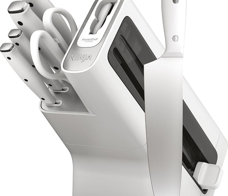 Experience effortless prep with the Ninja NeverDull system. High-carbon stainless steel knives stay razor-sharp with the built-in sharpener. Reliable, balanced, and perfect for everyday kitchen use.