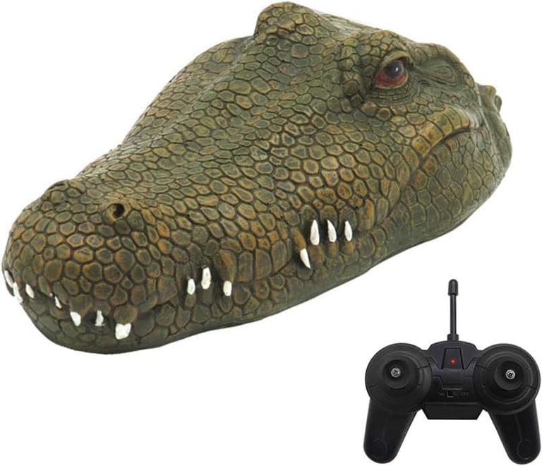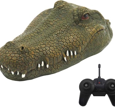 Control this realistic crocodile head RC boat for pools and lakes. Smooth steering, waterproof design, and fun prank action that entertains kids and adults while scaring birds away.