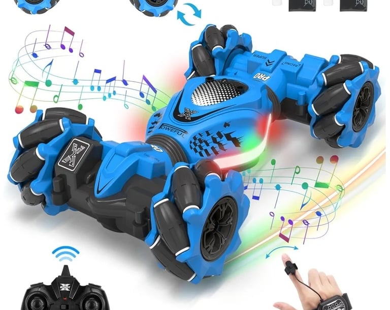 Experience thrilling stunts with this RC gesture-sensing car. 4WD, 360° rotation, lights, and music make it perfect for boys and girls aged 6–12.