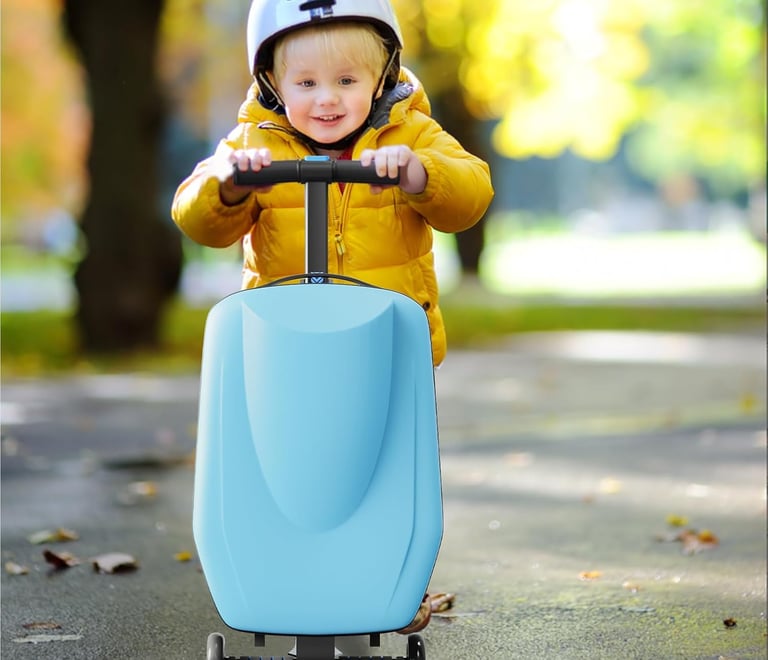 Travel made fun with the TABU 21" scooter suitcase! Foldable and lightweight, it doubles as luggage and a ride-on scooter—perfect for kids and teens ages 4–15.