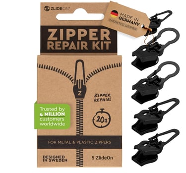 Fix broken zippers in seconds with this universal zipper repair kit. No sewing or tools needed. Works on metal and plastic zippers for jackets, bags, luggage, and outdoor gear.