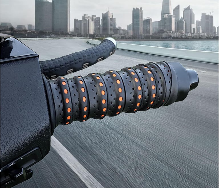 Upgrade your ride with these wrap-around motorcycle grips. Anti-slip PU material absorbs shock, reduces vibration, and adds comfort and control for daily rides on bikes and motorcycles.